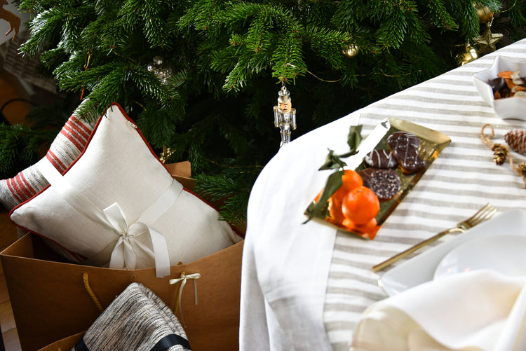 Chez Munja, nos galons sont tissés en France puis posés à la main sur chaque coussin. Ce détail change tout :