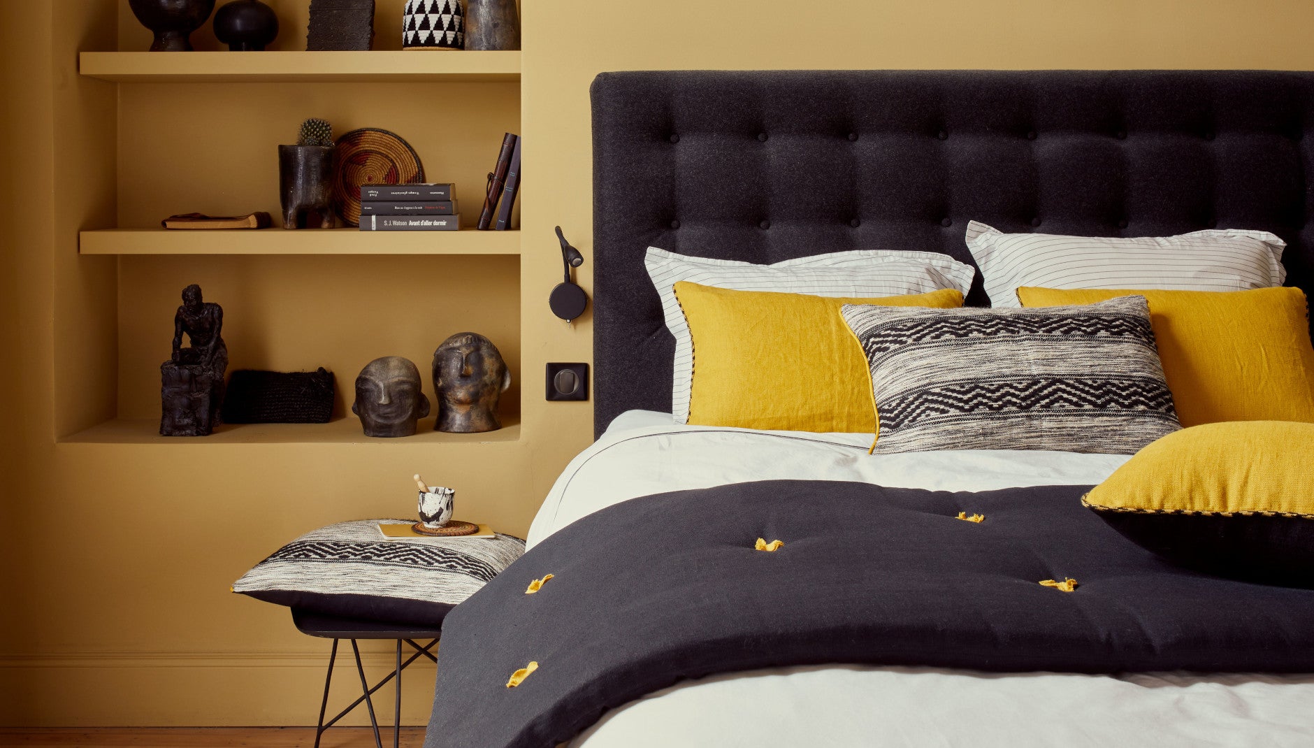 Coussins jaune moutarde et noir : contraste chic et touche solaire
