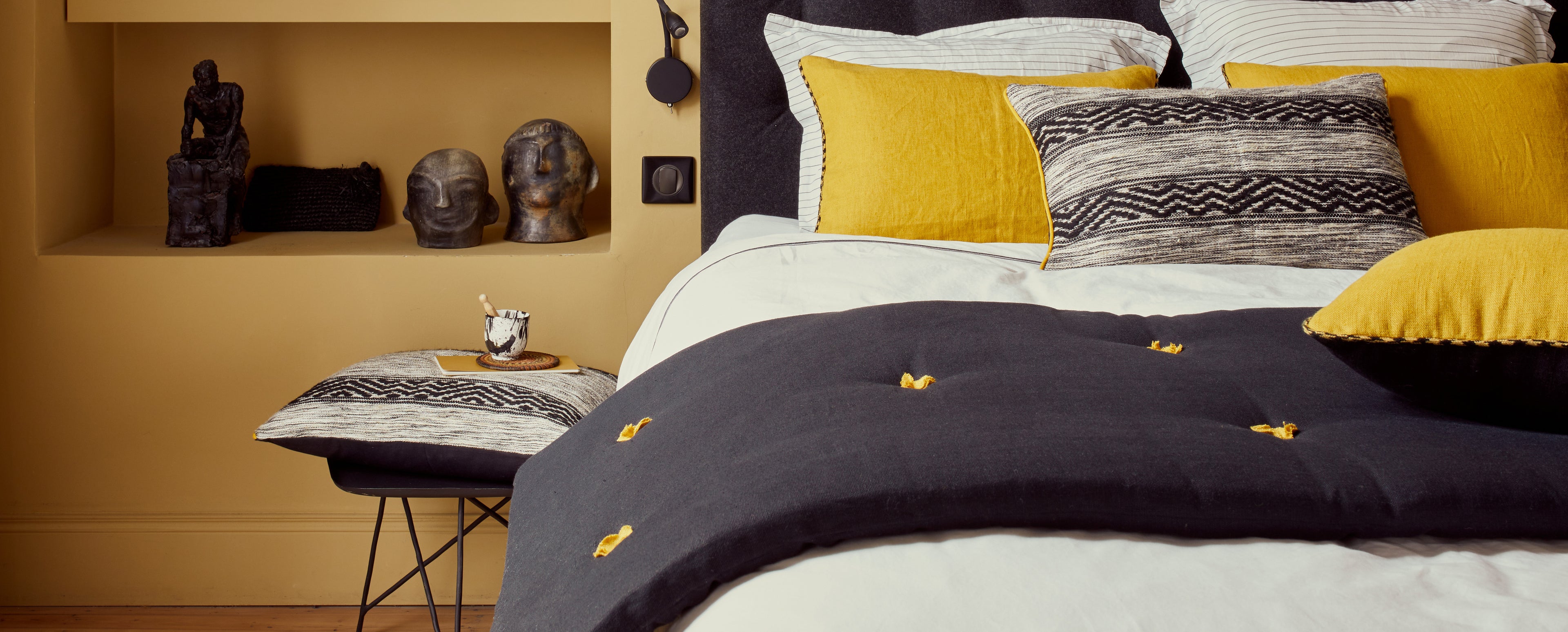 Tous nos édredons s’intègrent dans une collection complète (coussins, plaids, objets déco). Plus besoin de chercher : couleurs, matières et dimensions ont été pensées pour fonctionner ensemble. Composez un univers cohérent et raffiné, dans le salon comme dans la chambre.