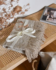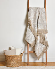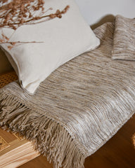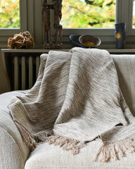 Ce plaid en lin beige chiné tissé à la main séduit par ses finitions raffinées : broderie taupe et longues franges réalisées manuellement. Une pièce artisanale aux tons naturels, parfaite pour réchauffer un canapé en lin ou sublimer un lit d’été. Proposé seul ou dans un coffret cadeau élégant, prêt à offrir.